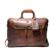 The William Continental Briefcase is handcrafted with certified full-grain, vegetable-tanned  leather. Contents are secured by a smooth-running, brass zipper, while the exterior features the William Collection luggage tag so your bag can always be identified. A leather-framed zipper pocket on the exterior front panel of the Continental allows fast access to your phone and other essentials. Carried comfortably in the hand with its gel-padded, stacked leather top handle, or on the shoulder or across the torso with the detachable, adjustable crossbody strap. The central compartment contains a padded laptop/tablet sleeve, phone pocket, eyeglass pocket, two dedicated pen loops, and a solid brass key ring. Solid brass hardware, industrial-grade nylon thread, and leather corner reinforcements ensure the Continental Briefcase is built to last a lifetime.