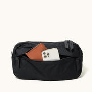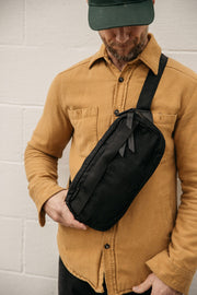 Constructed from 10oz waxed canvas featuring 5oz leather accents. The interior is large enough to accommodate a small water bottle, keys, phone, a couple granola bars and your point and shoot camera when it's time to explore.
