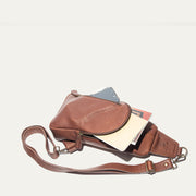 The Signature Leather Zip Around Sling is handcrafted from full-grain, vegetable-tanned leather. A rounded, two-way, brass YKK-zippered main compartment keeps your belongings secure, while a vertical zippered pocket on the front panel allows fast access to your essentials. An additional vertical zippered pocket on the industrial-grade, 18-ounce 100% cotton canvas back panel keeps your personal items secure and close to the body. A highly adjustable leather strap fits on the shoulder or across the torso, with two antique brass rings to customize the fit. Steel rivets and industrial heavy-gauge nylon thread ensure the Zip Around Sling will last a lifetime.