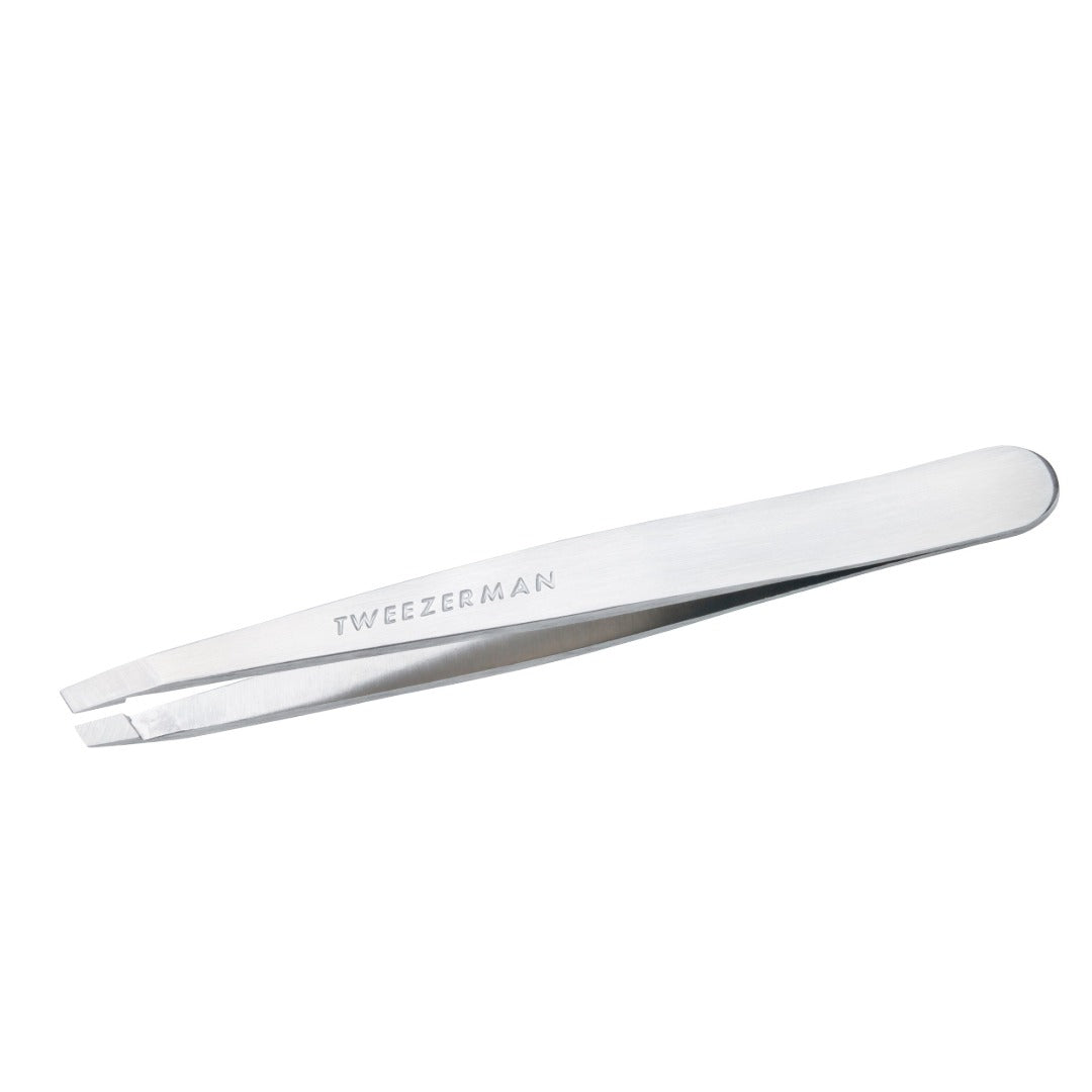 Get ready to pluck like a pro with this platinum silver slant tweezer! Featuring that iconic 25° angle, it's engineered to grip even the trickiest hairs and remove them straight from the root. The hand-filed tips are perfectly aligned for consistent, effortless control—no more wrestling with stubborn strays. With superior calibrated tension and a design that's won Allure's Best of Beauty award every single year since 2001, this tweezerman classic delivers the precision and comfort that beauty lovers have trusted for decades. Cruelty-free and ready to become your new brow bestie.