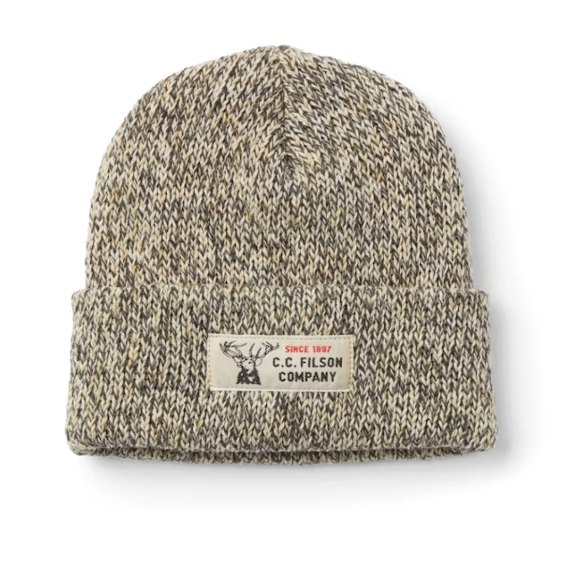Warm your entire body by putting Filson's lined Ragg Wool Beanie on your head. It’s knitted with eco-friendly wool/recycled polyester yarns, and lined with acrylic for itch-free comfort. Cuff can be pulled down for added coverage. Classic Filson logo label.