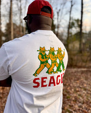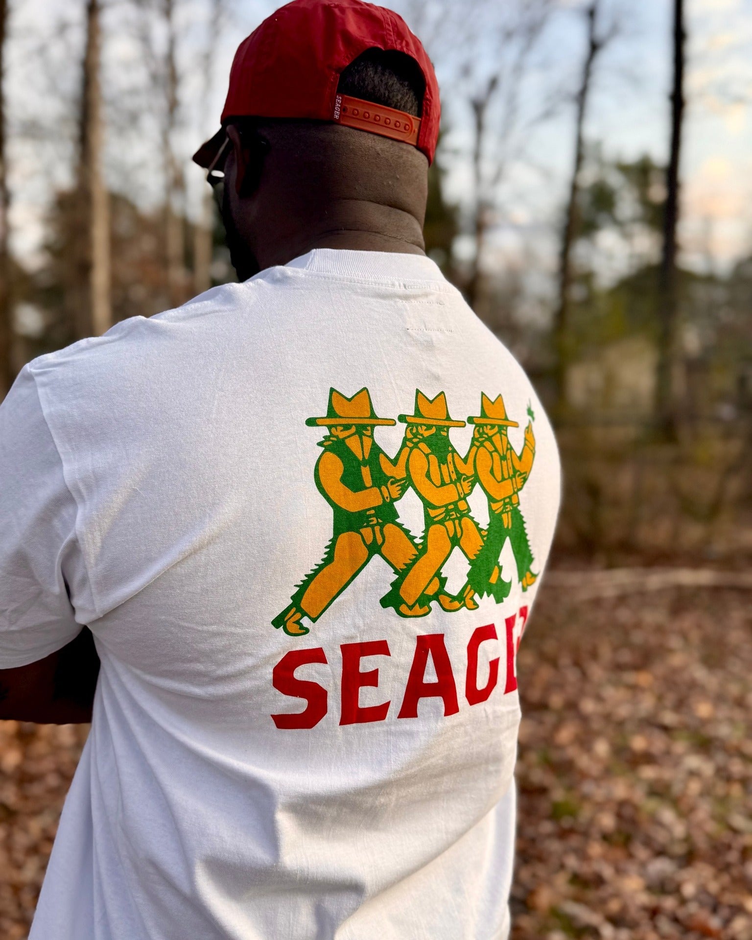 Fire off some style with the daring 'Finger Guns Tee'! Made with a blend of premium cotton and polyester, this tee packs a punch with its bold water-based ink print on the left chest and back. You won't want to miss out on adding this one-of-a-kind piece to your collection.