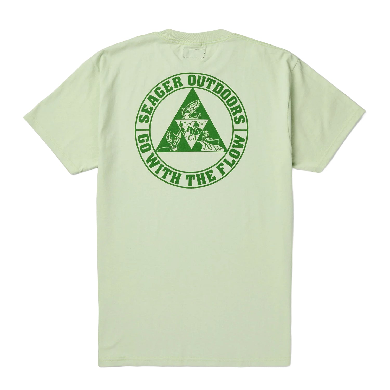 The 'Flow Tee' is a 90% cotton, 10% polyester medium weight tee with a left chest and back water-based ink print.