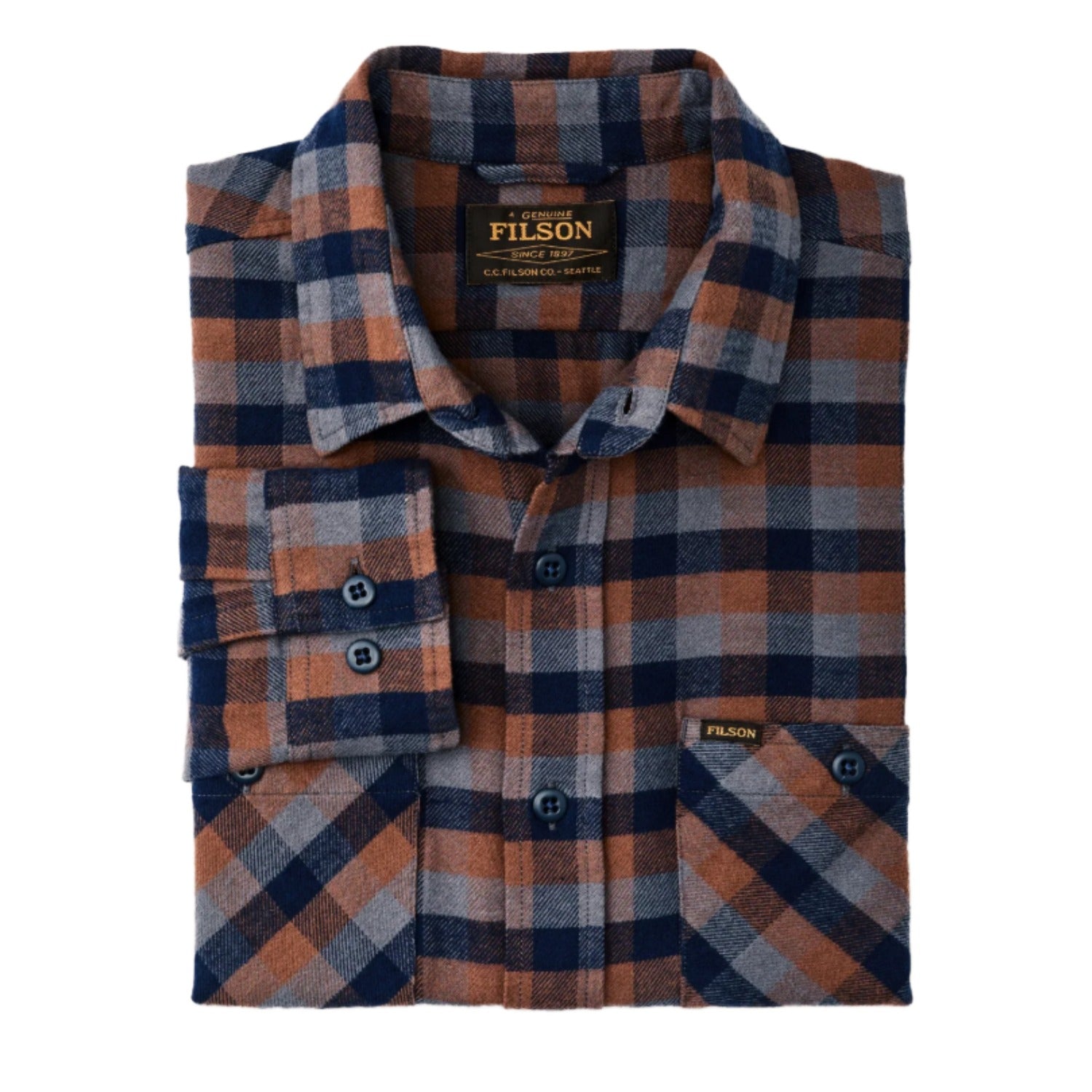 Introducing Filson's new midweight flannel, made with 5.5-oz. brushed cotton and sure to be a go-to favorite. Woven from soft yarns, its breathability and next-to-skin comfort are outstanding. It's modeled after shirts from the 1970s, with colors and patterns from that era. The cut is comfortably relaxed for ease of motion. Chip-resistant buttons secure the front, adjustable cuffs and no-flap chest pockets.