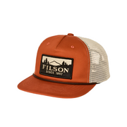 Like the trucker hats of the 1970s, this 5-panel cap is made with a pinched front crown and a flat brim. Mesh back and side panels provide excellent ventilation in the heat. Rope trim hides the joint of the front panel and brim, and the adjustable plastic back strap assures a custom fit. Classic embroidered Filson logo patch on front.