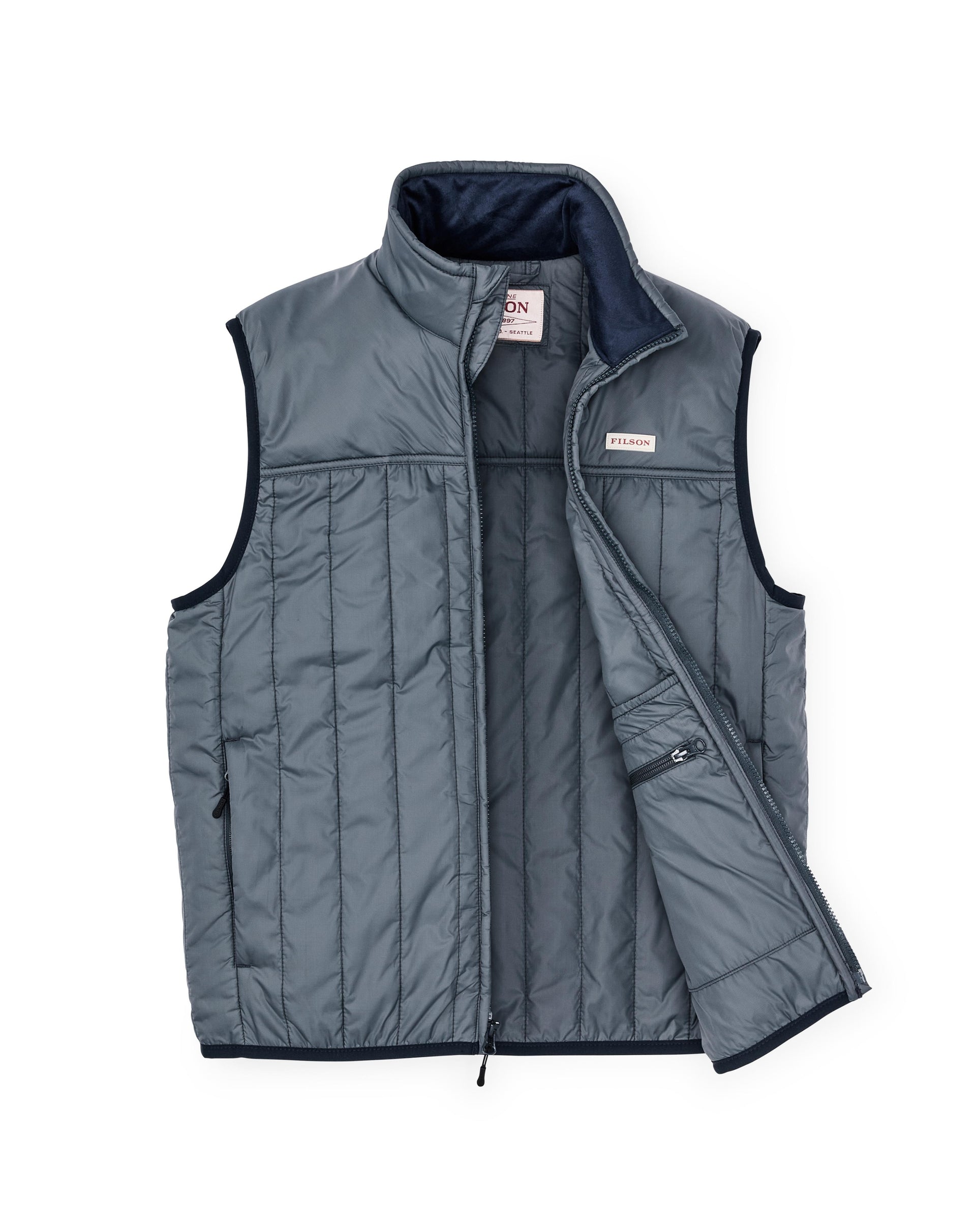 The Filson Ultralight Vest is a lightweight packable layer that provides warmth, dry or wet.