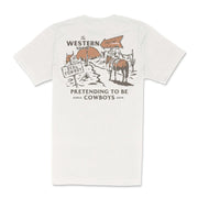 The road has been long and hard for this ol' cowboy, but he paces onward across the dusty plain. Carved by his own grit and determination, the path leads on... through the dust, past the bones of those who didn't make it, and towards the proverbial never ending sunset. The cowboy's tired. Not sure he can keep it up anymore....... His time has run out.......... So he quits pretending and turns back! Time to take his giddy-up horse back to the stall cause the trail ride's over. He changes out of his rental coveralls, puts his skinny jeans and vintage Western shirt he scored off eBay back on, and slaps on the ol' blue light glasses to head to the coffee shop for a turmeric mylk latte and watch some Spaghetti Westerns. He's going to plan a DOPE John Wayne tattoo today.