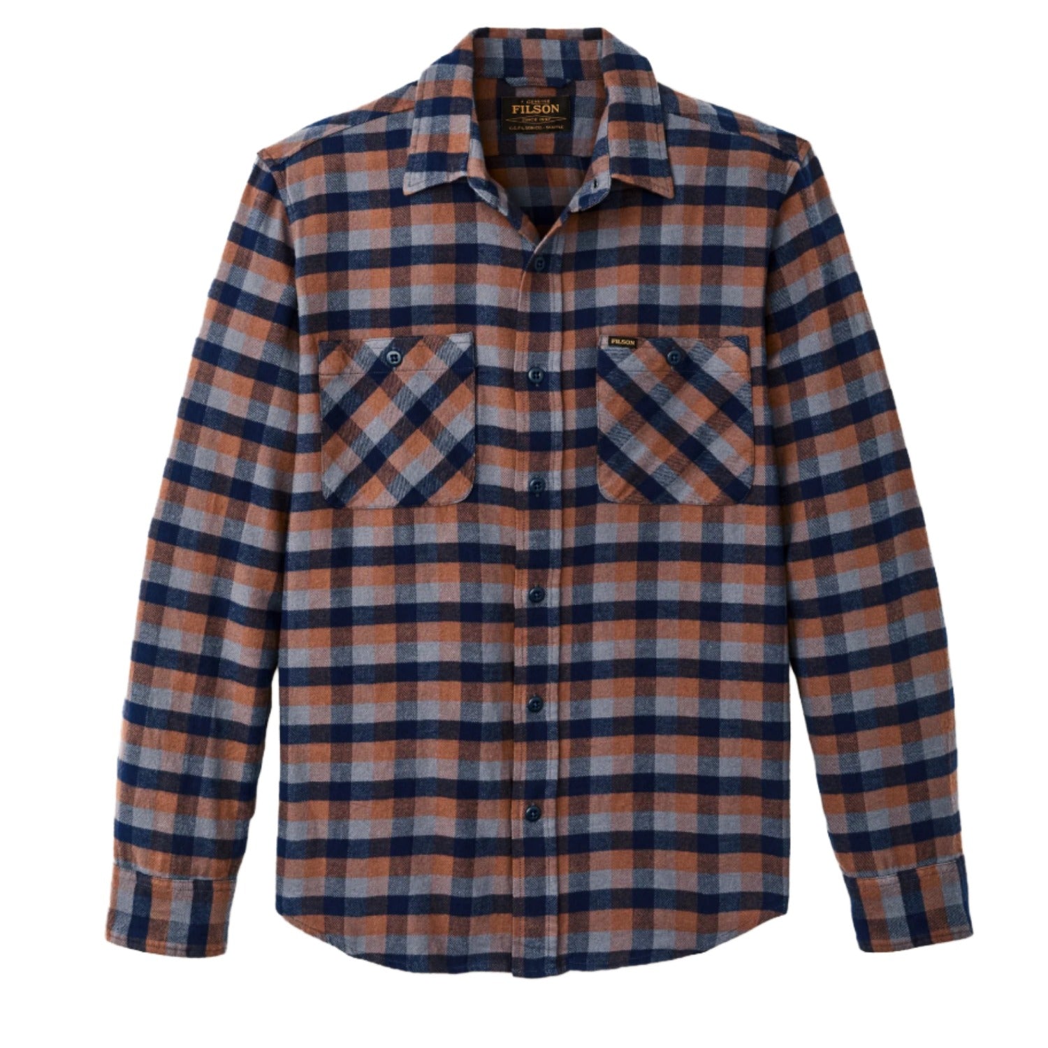 Introducing Filson's new midweight flannel, made with 5.5-oz. brushed cotton and sure to be a go-to favorite. Woven from soft yarns, its breathability and next-to-skin comfort are outstanding. It's modeled after shirts from the 1970s, with colors and patterns from that era. The cut is comfortably relaxed for ease of motion. Chip-resistant buttons secure the front, adjustable cuffs and no-flap chest pockets.