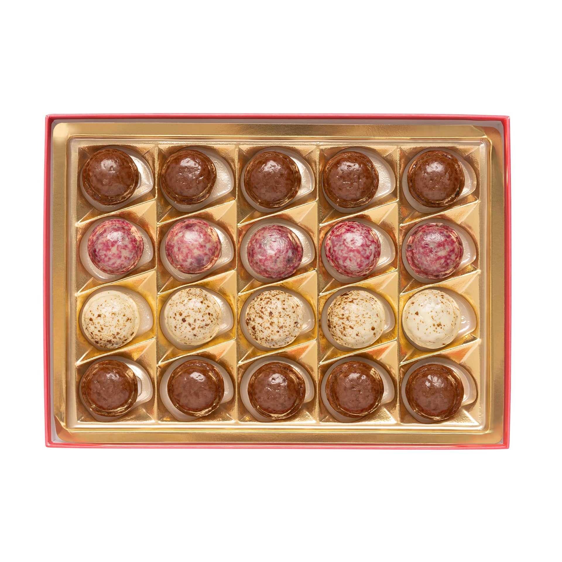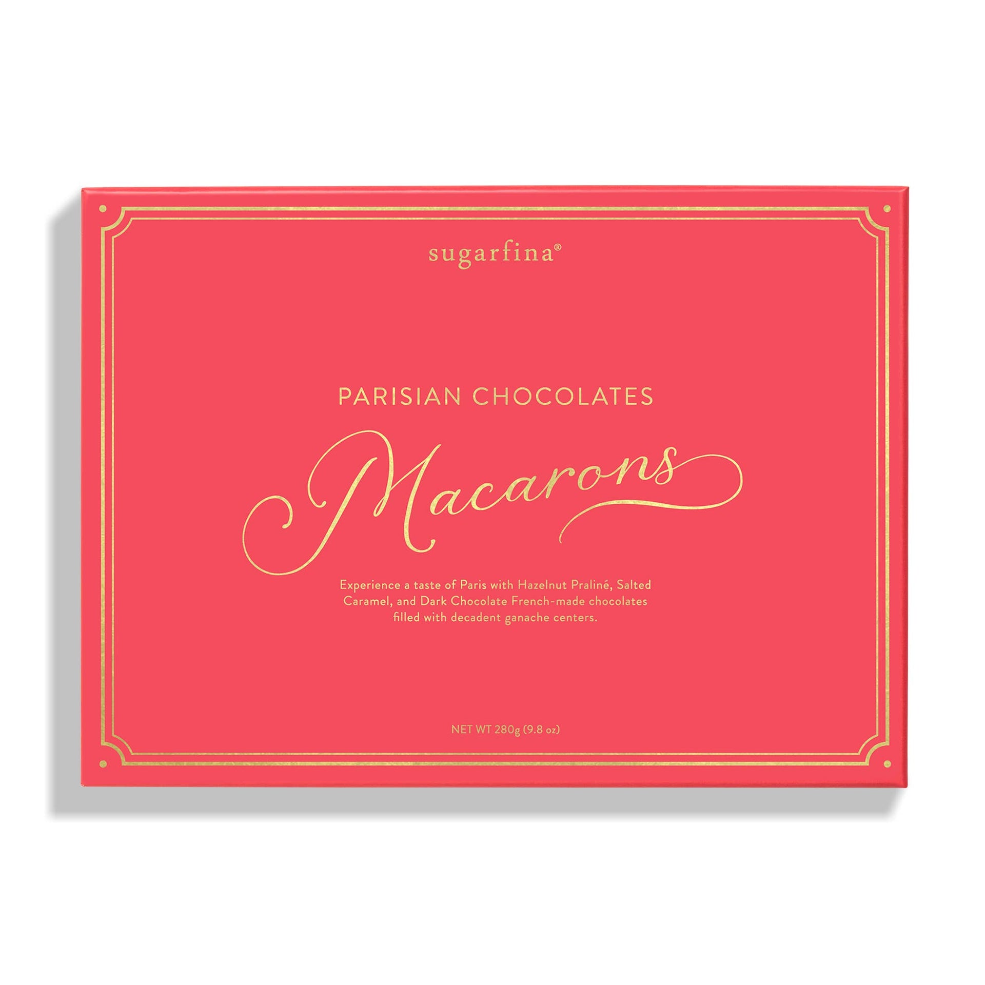 Experience a taste of Paris with Hazelnut Praliné, Salted Caramel, and Dark Chocolate French-made chocolates filled with decadent ganache centers.