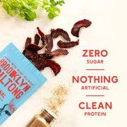 Made with just 6 ingredients, this bold and savory air-dried beef snack packs 16g of protein per serving and zero sugar. It’s a beef jerky alternative for people who give a damn about what they eat. No sugar crashes. No weird additives. Just thinly sliced steak seasoned and air-dried the South African way, then reimagined in Brooklyn, NY.
