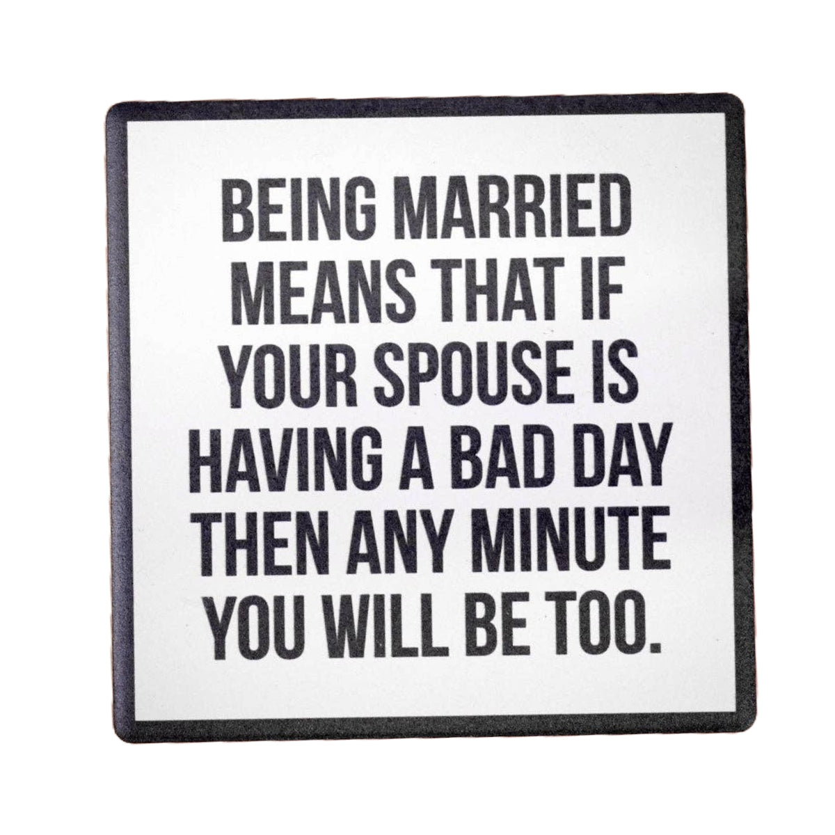 Being married means that if your spouse is having a bad day, then any minute you will be too.