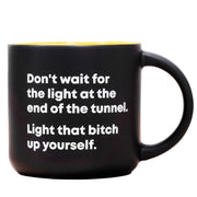 Light That Bitch Up Yourself Mug – your daily reminder to stop waiting and start creating your own path. This empowering 14oz ceramic mug features an inspiring message for anyone ready to take control of their destiny. Perfect for morning coffee, afternoon tea, or any moment you need a motivational boost, this mug celebrates self-determination and bold action. The vibrant, eye-catching design makes it an instant conversation starter, whether you're at your desk, in the break room, or sharing it with someone who needs the encouragement. Crafted from durable ceramic, it withstands daily use and repeated washing without fading. Ideal for gifting to the go-getter in your life, treating yourself to a confidence boost, or adding to your collection of statement pieces. Embrace your power, light your own way, and sip with purpose.