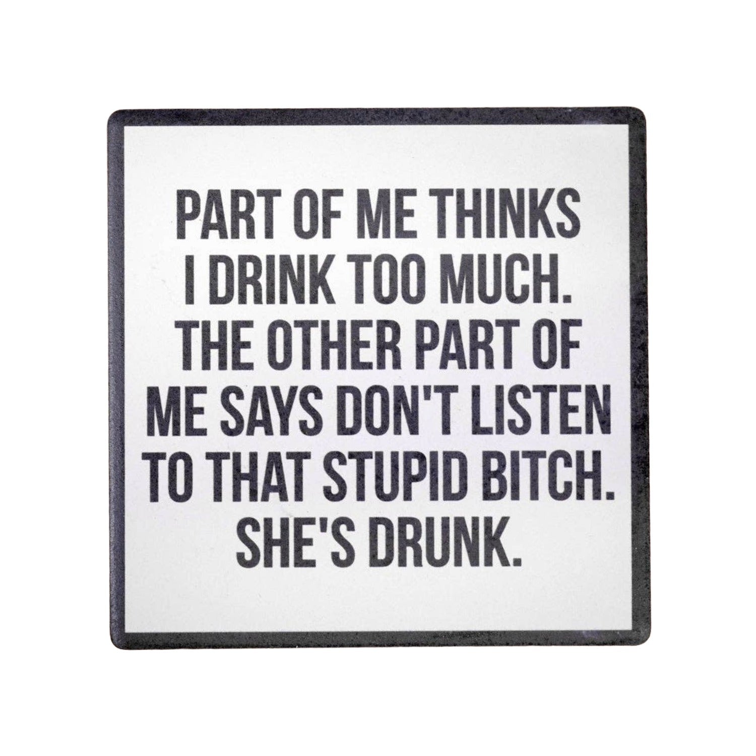 Part of me thinks I drink too much. The other part of me says don't listen to that stupid bitch. She's drunk.