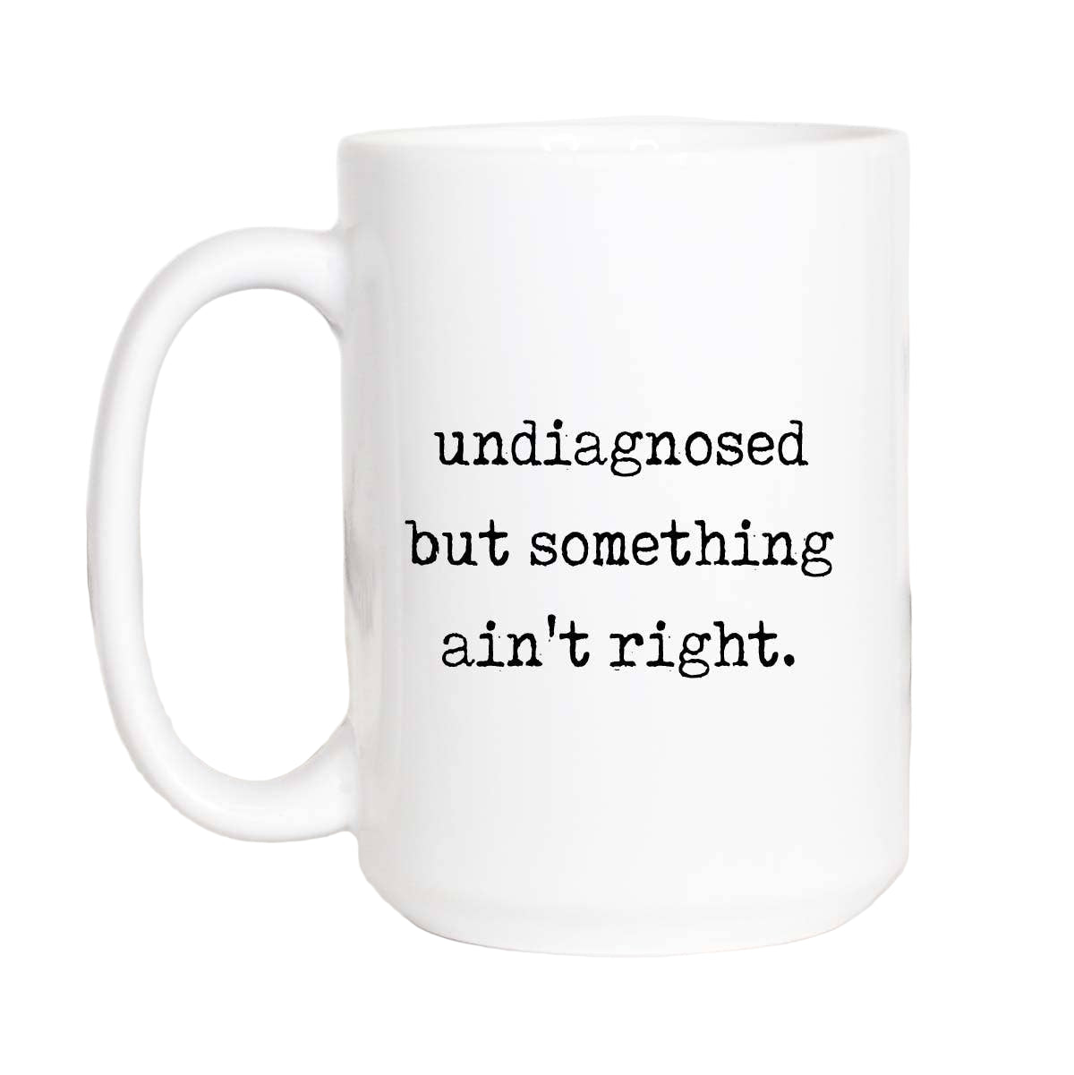This sarcastic coffee mug says it all: undiagnosed but something ain’t right. Perfect for anyone who deals with daily chaos, mental health humor, or just needs coffee to function.