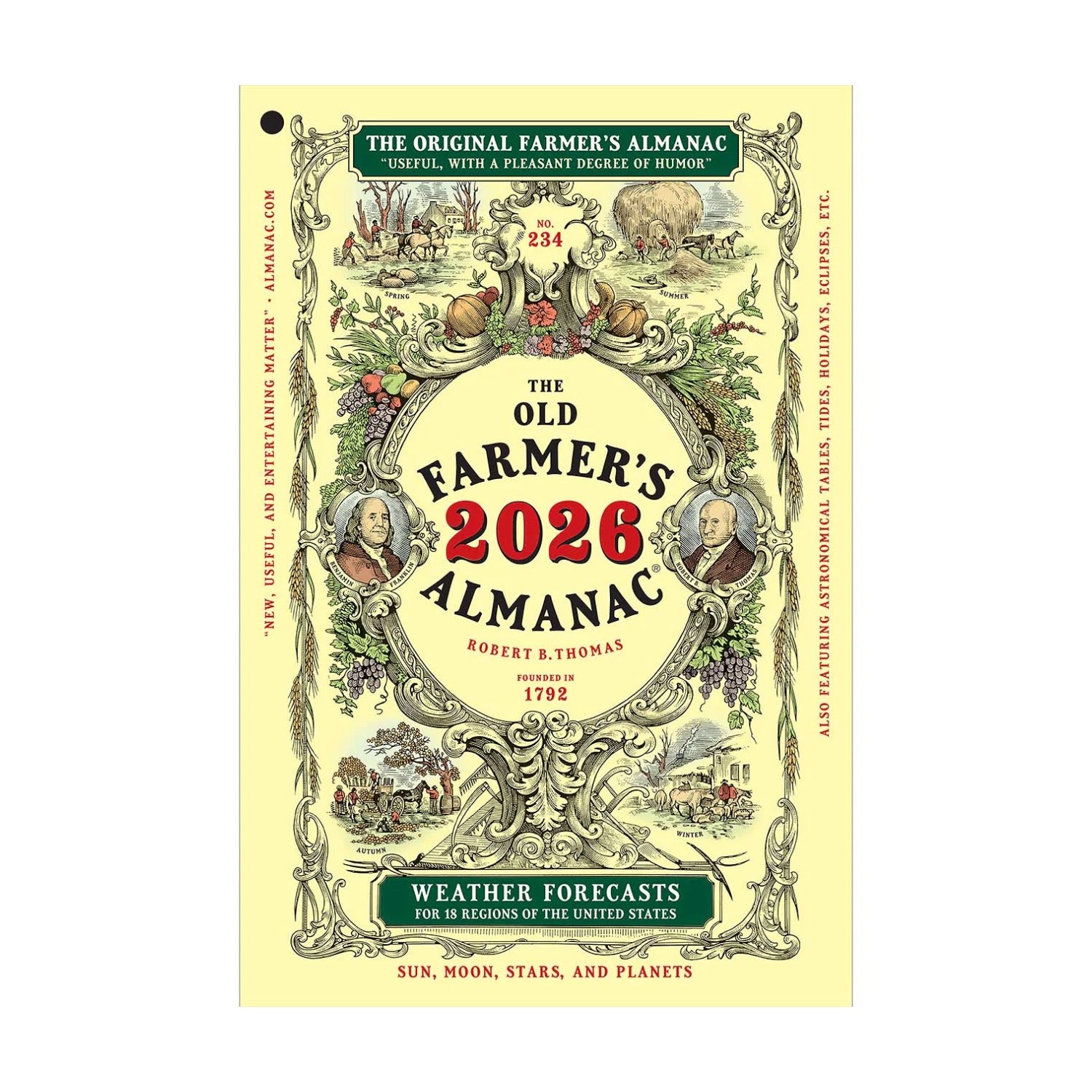 The Old Farmer’s Almanac has been making every day special since 1792, and, with the 2026 edition, it continues this tradition in its inimitable fashion. Trusted by generations from all walks of life for its honesty and accuracy, the Almanac delivers fun facts, predictions, feature articles, and advice across many interest areas to readers who actually live—or aspire to live—the country lifestyle, with the intent of helping them to make better decisions. As a calendar of the heavens, it provides detailed daily astronomical data (Sun/Moon rise/set times, length of day), tide times, and planet/star sightings for every sky watcher, from novice to expert. As a calendar of the year, it presents annual and seasonal events, holidays, anniversaries, and timely trivia; astrological “Best Days” and cycles; and much more for the curious and the conscientious. As a time capsule of the year, it contains cultural trends; weather forecasts and conditions; articles on interesting topics such as gardening, home arts and remedies, amusements and contests, history, husbandry, nature, cooking and recipes, folklore, pets, and sports; and more—all in a way that is “useful, with a pleasant degree of humor.