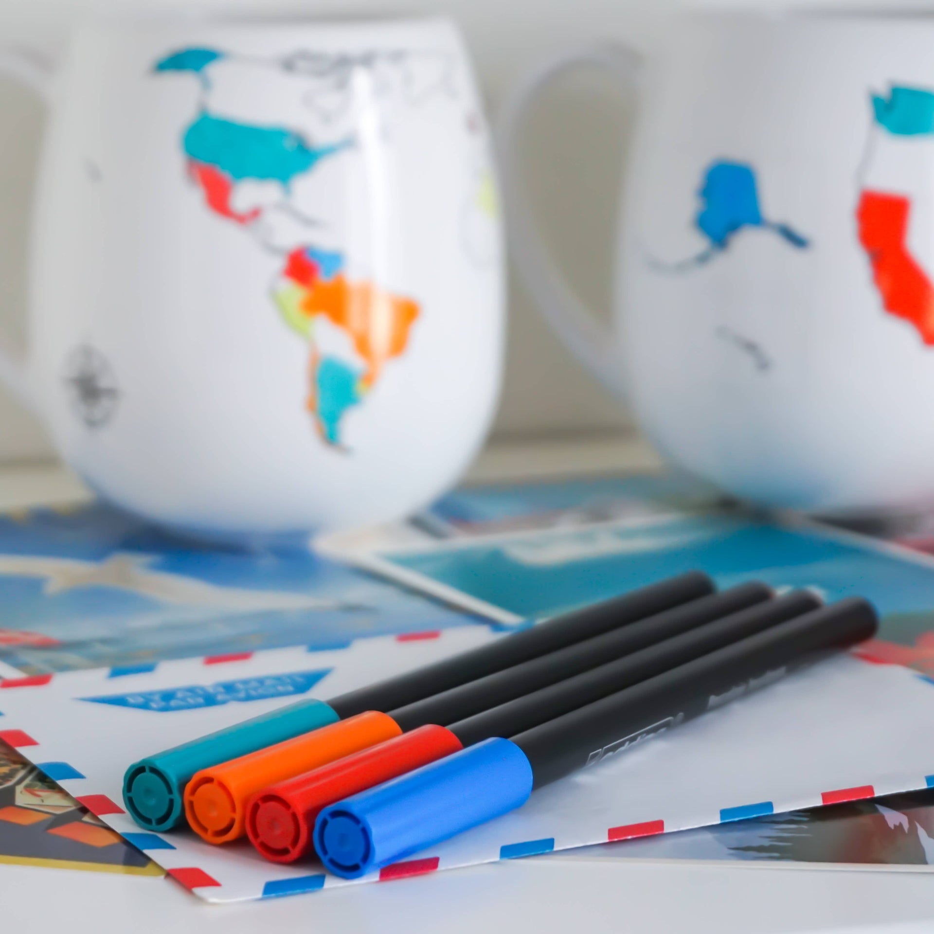 This set of pens is ideal for decorating on porcelain with brilliant color results. The ink is also great for use on glazed ceramic and heat-resistant glass. It is made from sustainable materials and is ideal for coloring and personalizing mugs, on porcelain, glazed ceramics and ovenproof glass