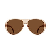 Jenever redefines retro with its oversized teardrop aviator shape and bold lens height, offering a distinctive yet wearable silhouette. Designed for a medium fit, it balances comfort with striking proportions, making it effortlessly wearable. The temples showcase sensory trip detailing with raised ridges for a subtle tactile feel on a flipped asymmetrical silhouette. As the second interpretation in our aviator sun series, Jenever serves as a harmonious counterpart to Rifka’s square navigator style, redefining retro elegance.
