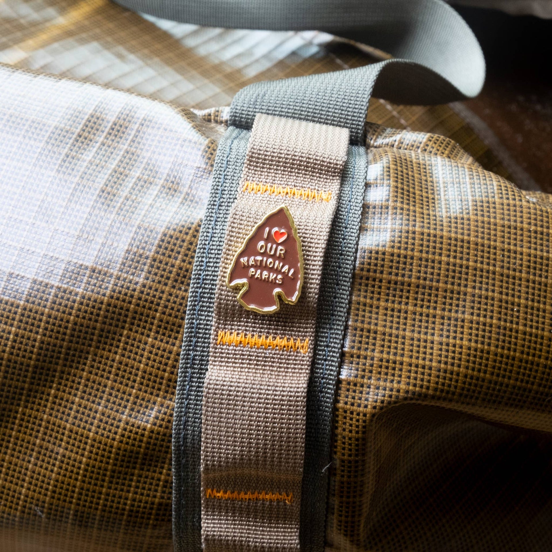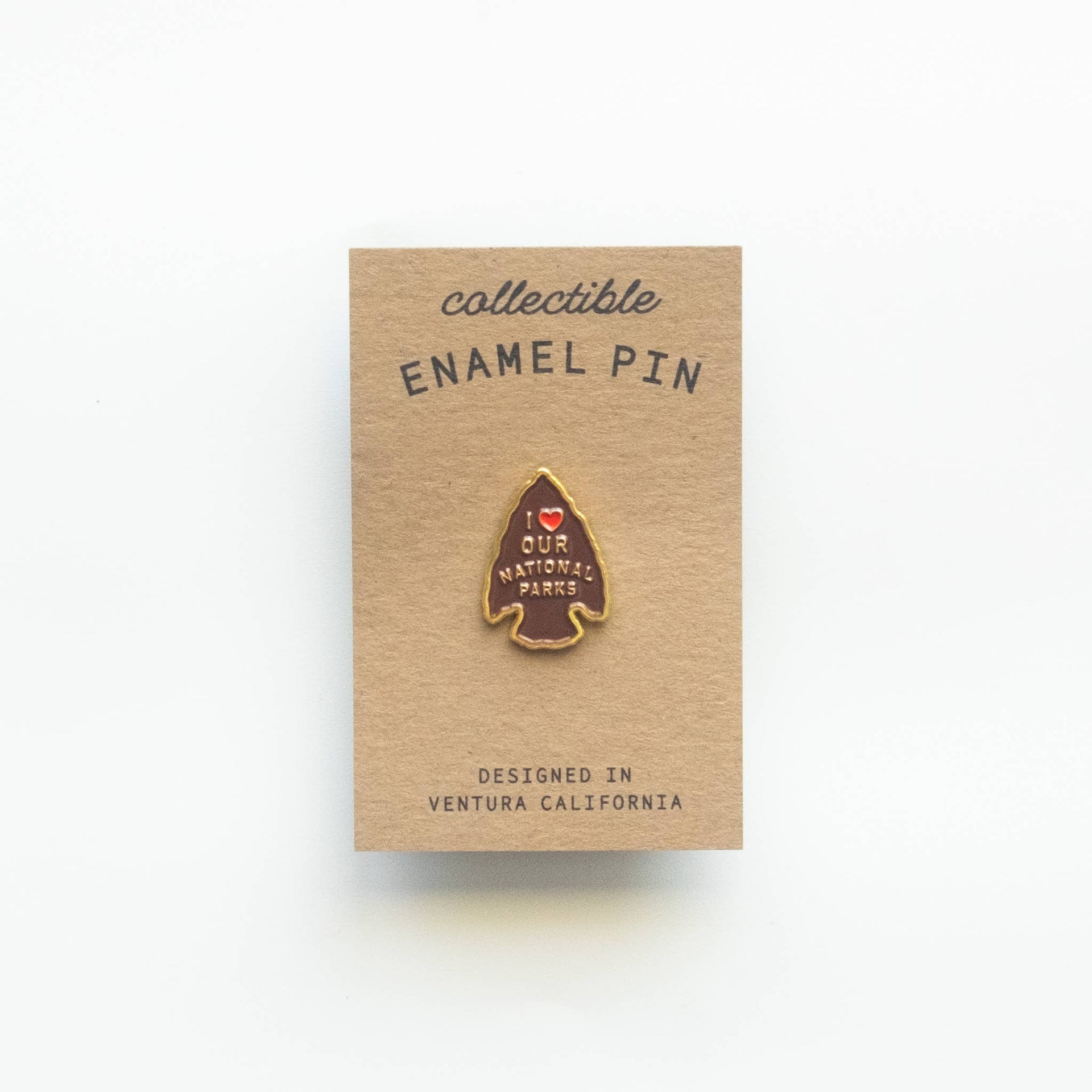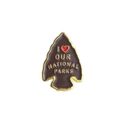 Show your love for the great outdoors with the "I Love Our National Parks" soft enamel pin! Shaped like a classic arrowhead and finished in metallic gold, it measures 1" x 0.75" and secures with a butterfly clasp.