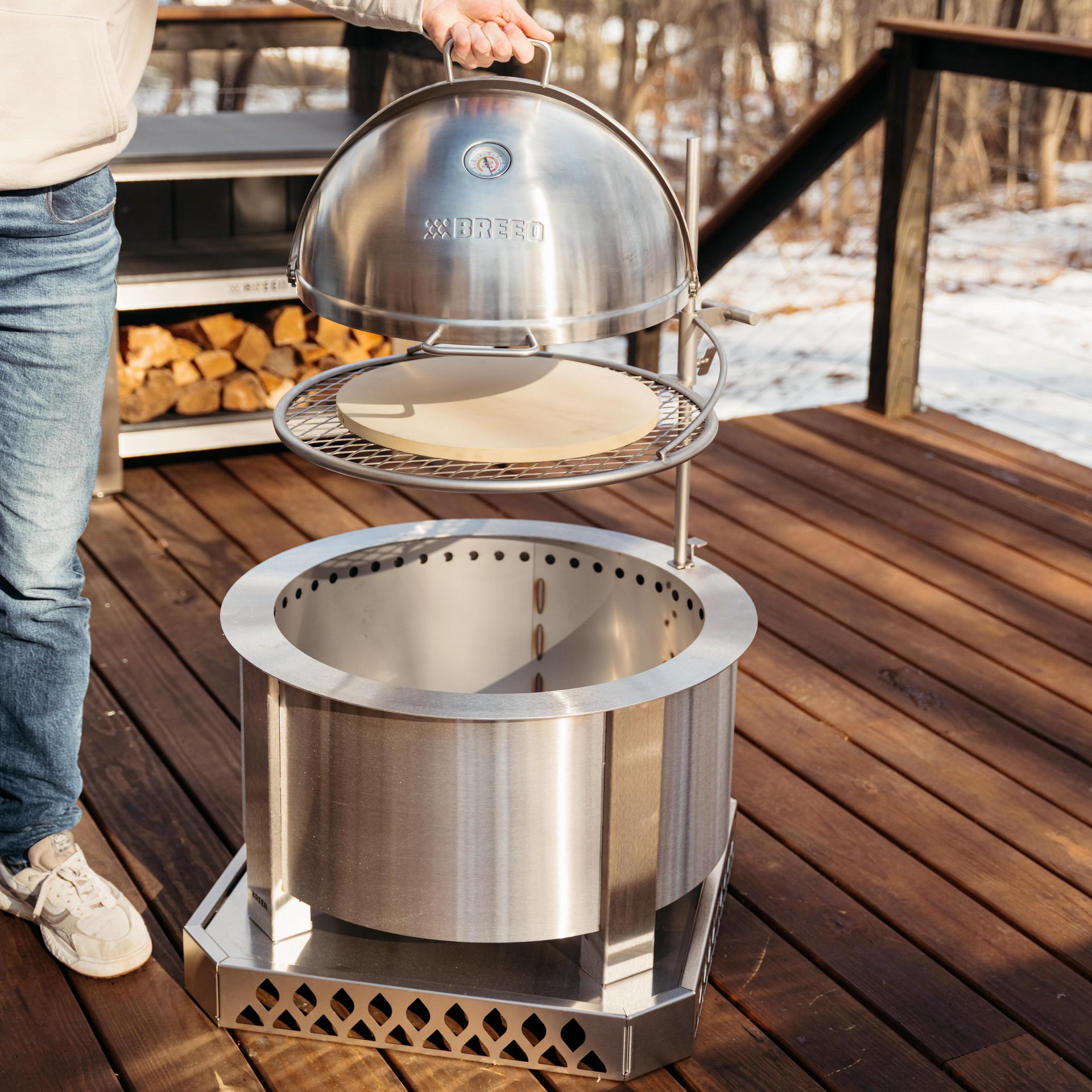 The Breeo® Grill Dome turns your Outpost Grill into a versatile and adjustable live-fire oven by redistributing heat around your food for a more even cook. Quickly capture and redirect heat with the Grill Dome to grill, smoke, or pair it with the stone to bake. NOTE: Outpost Grill Required