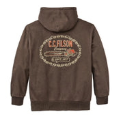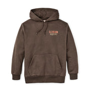 The wide rib-knit cuffs and hem stretch and recover, holding their shape season after season. The hood is generously sized to fit over a cap and cinches down with a drawcord against the wind. Finished with a front kangaroo pocket and original graphics designed in-house at Filson.