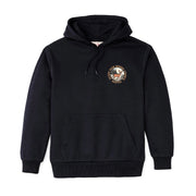 Made with durable 75% cotton blended with 25% polyester for strength. The interior is lofted for warmth and the smooth exterior surface resists pilling. The hem and cuffs are built with a wide and sturdy rib-knit for a custom fit with outstanding stretch and recovery. The large hood easily fits over a ball cap and is drawcord-adjustable for security. Finished with a front kangaroo pocket and custom graphics.