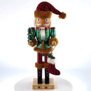 This 14 inch Furry Woodsman Santa Nutcracker is part of Nutcracker Ballets Nutcracker Specialty Collection. He has a furry red and black flannel hat and is holding a flannel stocking in one hand and a Christmas tree in the other. Fur trim on his boots and wrists complete his look.