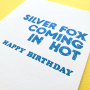 Silver Fox coming in Hot! A birthday card for that silver hottie in your life or someone you want to give a little rouse to.