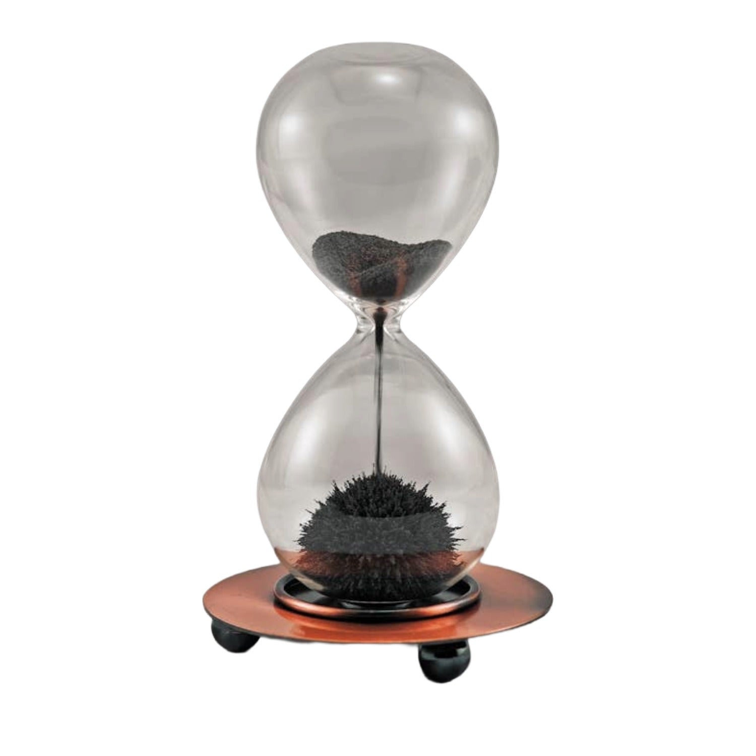 This Magnetic Sand Timer features a copper-colored base and stands 6.5" tall when placed on it. Watch the sand flow for about 47 seconds in a mesmerizing, magnetic twist.