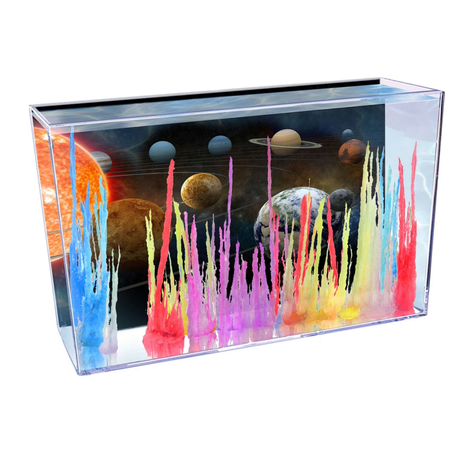 Create a brilliant underwater garden with this instant crystal growing kit! Place your colored stones (metal salt crystals) into the magic solution (sodium silicate dissolved in water) and watch them grow into colorful crystal formations. In six hours, repeat these steps and watch with amazement as your rocks expand into colorful stalagmite-like towers. Explore the enclosed STEM content to learn about the chemical process.
