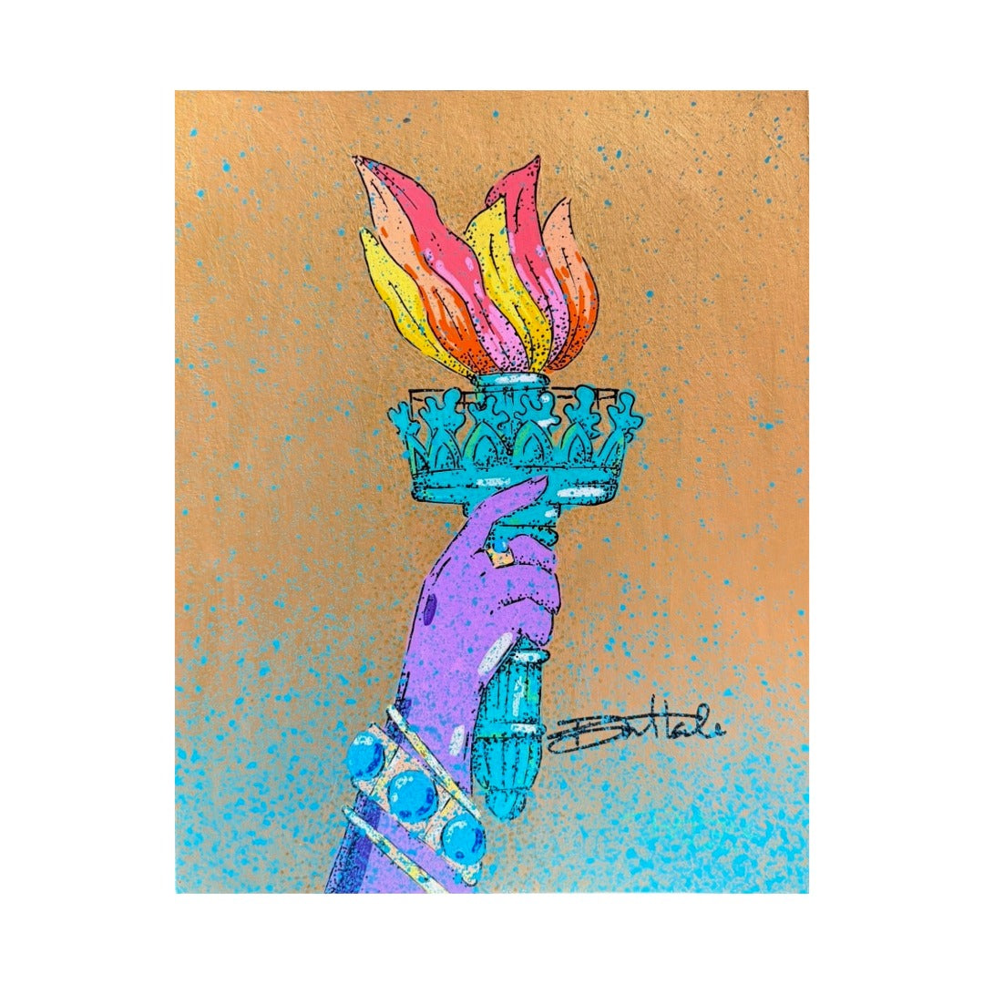 Step into a bold reimagining of an American icon with the Lady Liberty Painting by Little Rock artist Daniel Hale. This vibrant masterpiece punches tradition in the face, draping Lady Liberty in flashy jewelry and bold accents that electrify. Against a gold backdrop, the classic torch burns with colors that defy expectations. A fearless mix of fantasy and streetwise edge, this painting flips the familiar into something unapologetically fresh and fierce.